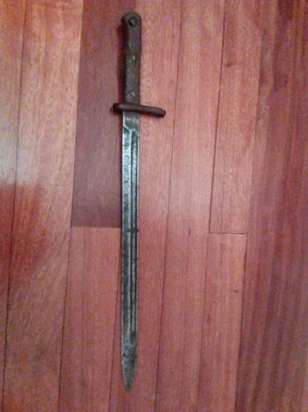 Como lo prometido es deuda aqui dejo unas fotitos de la bayoneta, creo que es una bayoneta para el mauser 1893, pero no lo se seguro.