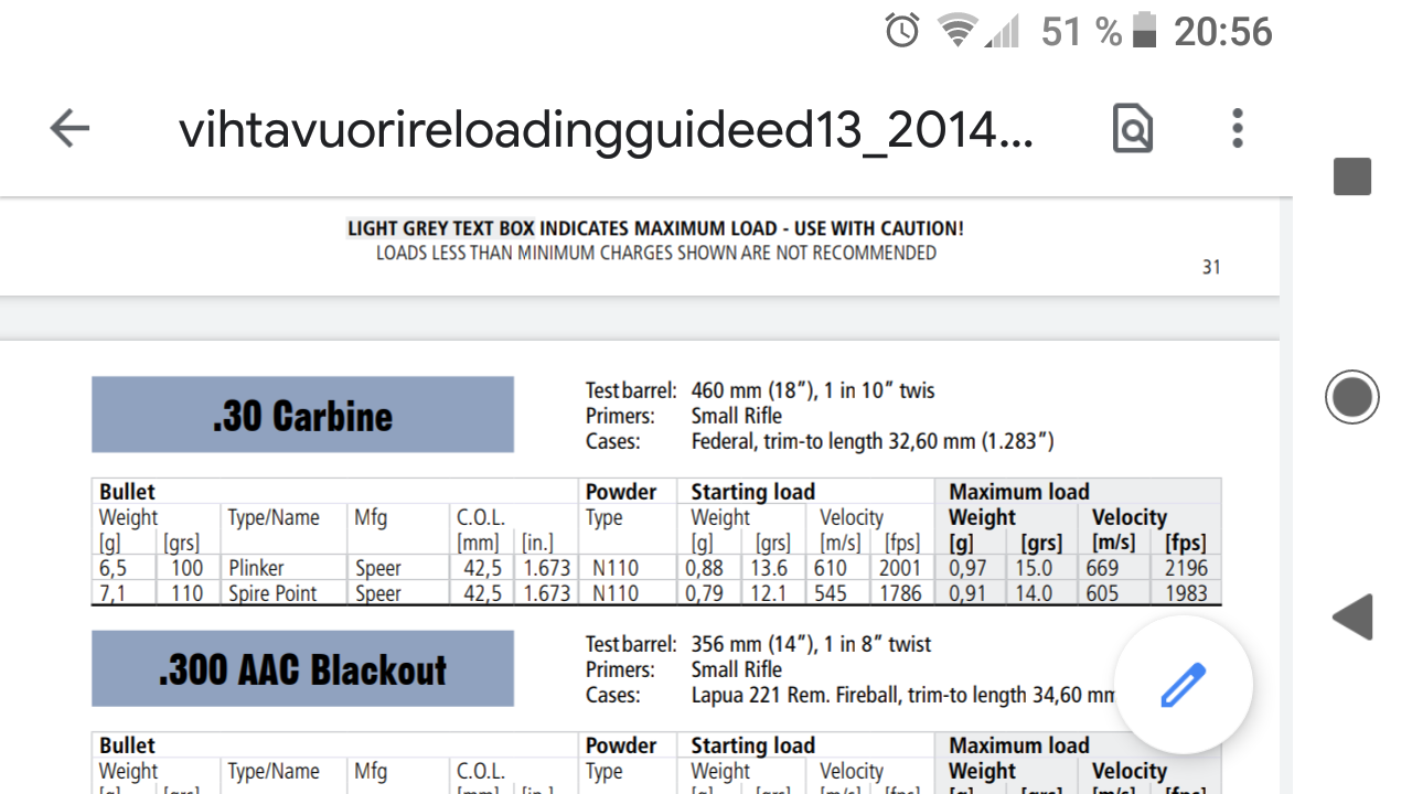 Gracias mirare en brownells, si recargo desde hace algun tiempo ya, y no, no es la longitud de la vaina, por cierto a ver si alguien me dice que polvora de RS equivale a la SP3 de vectan