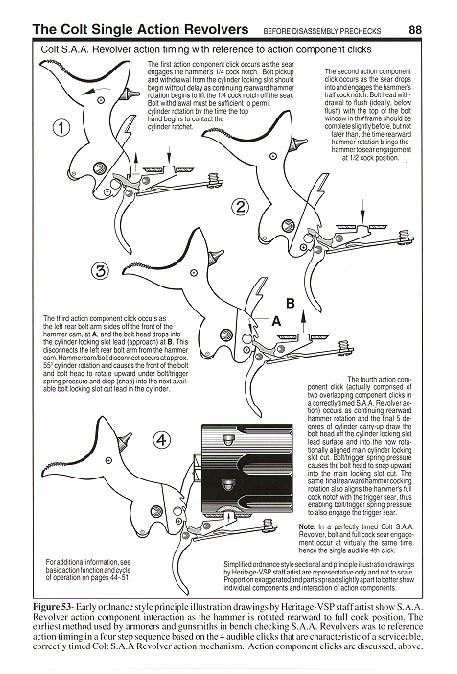 Peor es que salte tarde o demasiado ajustado, con lo cual, en el SAA, al ir tambor libre, no como en los SW o Colt DA, frenado por trinquete, tiende a sobregirar.