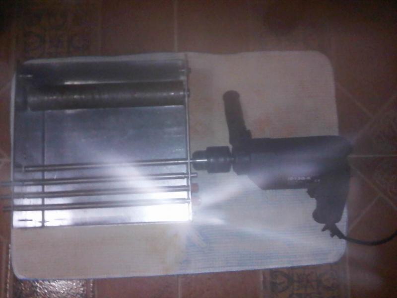 Yo tengo uno parecido,como podeis ver en la foto, la base es de madera, no me costo ni un €, pero calculo que si compras el taladro, la barillas, no te sale por más de 20 €.
