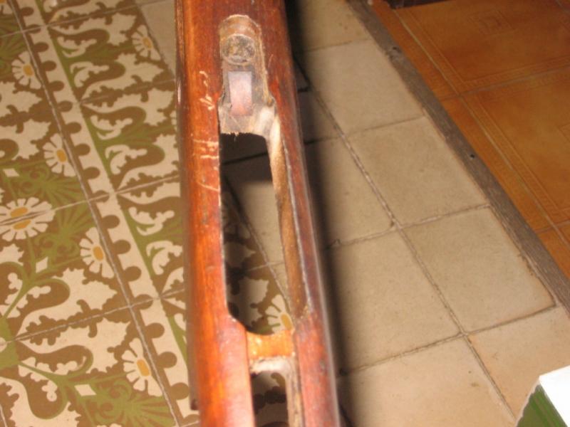 Ya tengo la culata desmontada entera. Bueno, entera no, que queda por quitarle donde van las anillas de la correa, y una prolongacion del pistolet, que le hizo en anterior dueño con palo de rosa, creo y la roseta de un corzo. Muy chulo todo, pero que al quitarle los hierros se nota muy descompensado. (no se si se vera en la foto)