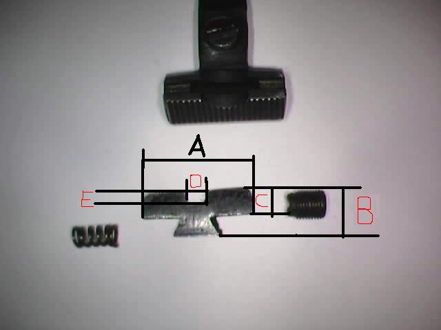 No te preocupes por la cota, si le haces la cola de milano con una lima triangular te da el ángulo de 60 grados, por un lado apoya el muelle y por el otro el tornillo, no tiene ningún misterio, ni problema por hacerlo mas largo o corto, pero con referencia de las otras medidas puedes hacerlo parecido