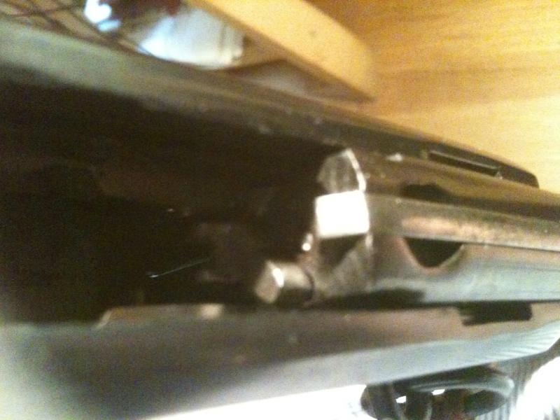 Esta pieza en forma de L debe sujetar ligeramente el vástago-muelle.casquillo, pero debe dejar que corra libremente hacia delante y atrás. Si roza mucho o tiende a empujar hacia arriba el vástago, tendrás que apalancar esta pieza en forma de L un poco (una décima) hacia abajo con un destornillador plano y ancho, con mucho-mucho cuidado, y guardando siempre que quede apoyado el vástago y a la vez sujete el casquillo por su parte trasera.