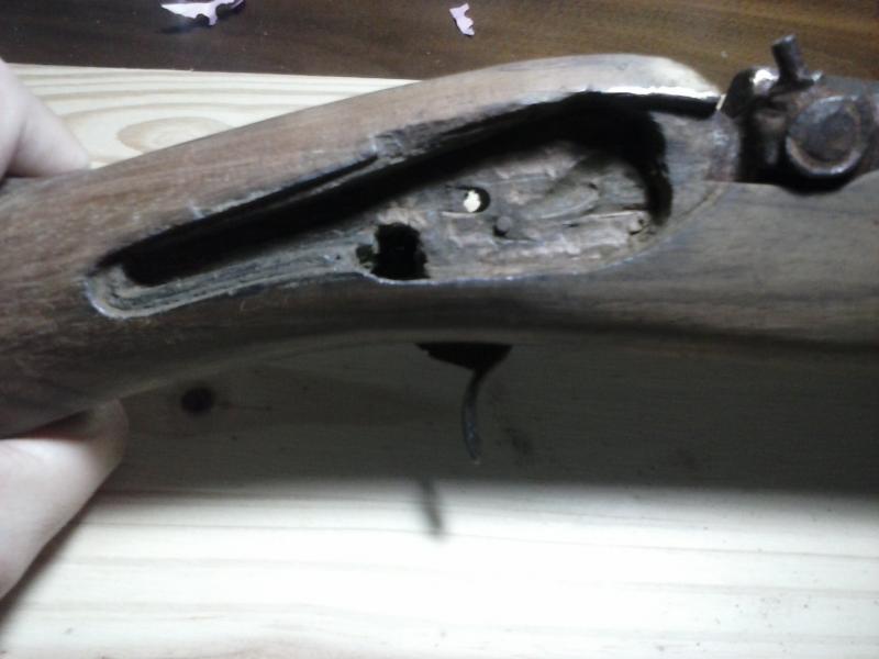 Primero la desmonte. limpie con un trapo el hierro y la madera. Luego,decape y retire el barniz enegrecido que cubria la culata. Y ahora voy a por el vil metal...alguna sugerencia????