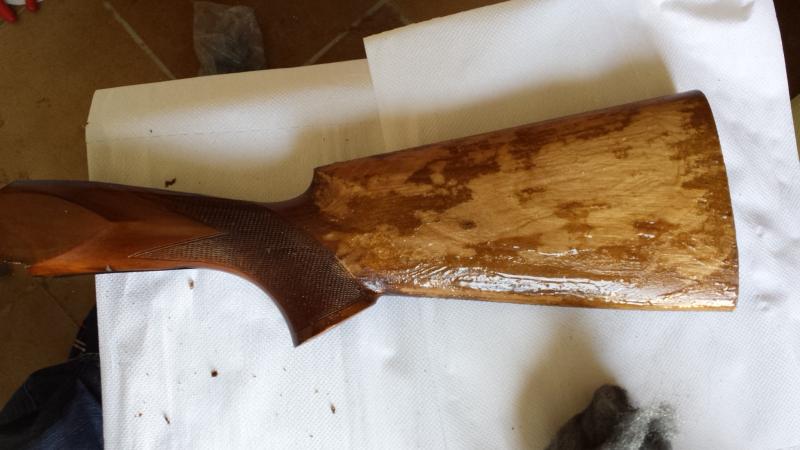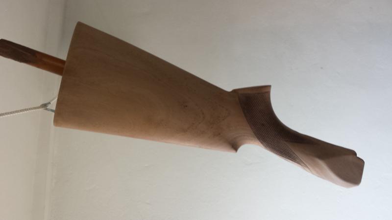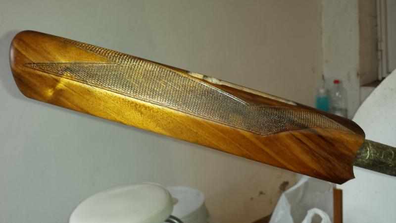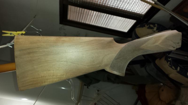 Después de decapar,me ha gustado el tono de madera que tiene y no le he dado tinte,le he aplicado una mano de aceite de tung,tanto a la culata como al guardamanos,y se ha quedado bien,pero cual ha sido mi sorpresa que al darle al guardamanos,ha oscurecido mas que la culata.