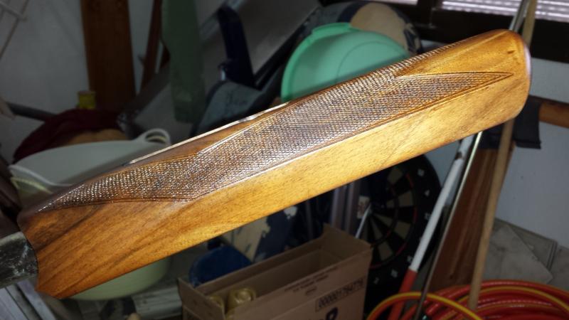 Este es el guardamanos tras una capa de aceite de tung,el cual se ha quedado mas oscuro que la culata,no se si sera por el veteado o por que fuese diferente madera,pero todo se arreglará.