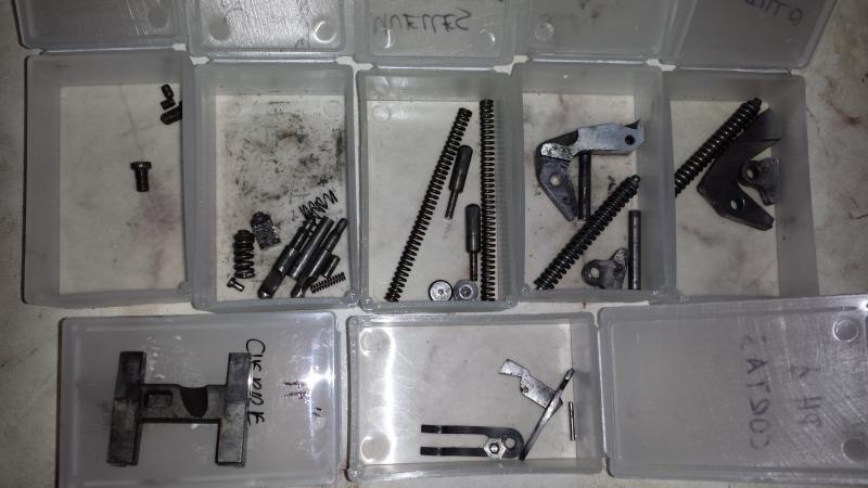 La bascula la desmonte casi entera,menos los mecanismos del gatillo,no porque no me atreva,es porque lleva unos muellecillos y pasadores pequeños facil de perder.