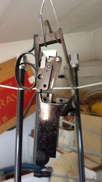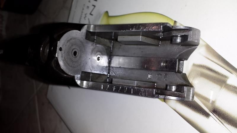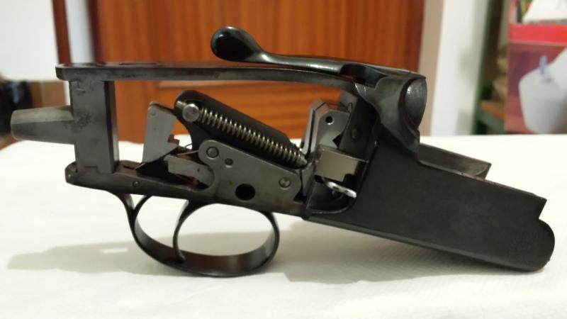 Despues de ajustarla con la H del cierre nueva,poner los muelles de los martillos nuevos,las dos agujas percutoras,muelles de la palanca de apertura y varillas empujadoras de extraccion ,tambien nuevas.