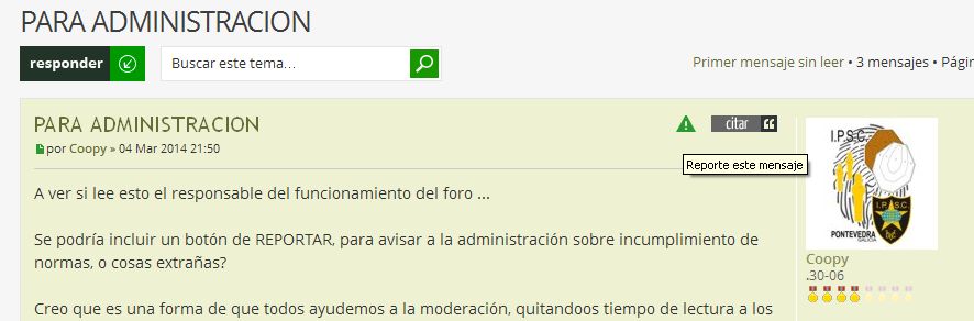 PD:Nunca me habia fijado en el boton de reportar a la administracion,sabiendo que existe sera mas facil ayudar en la buena marcha del foro,un saludo. :birra^: