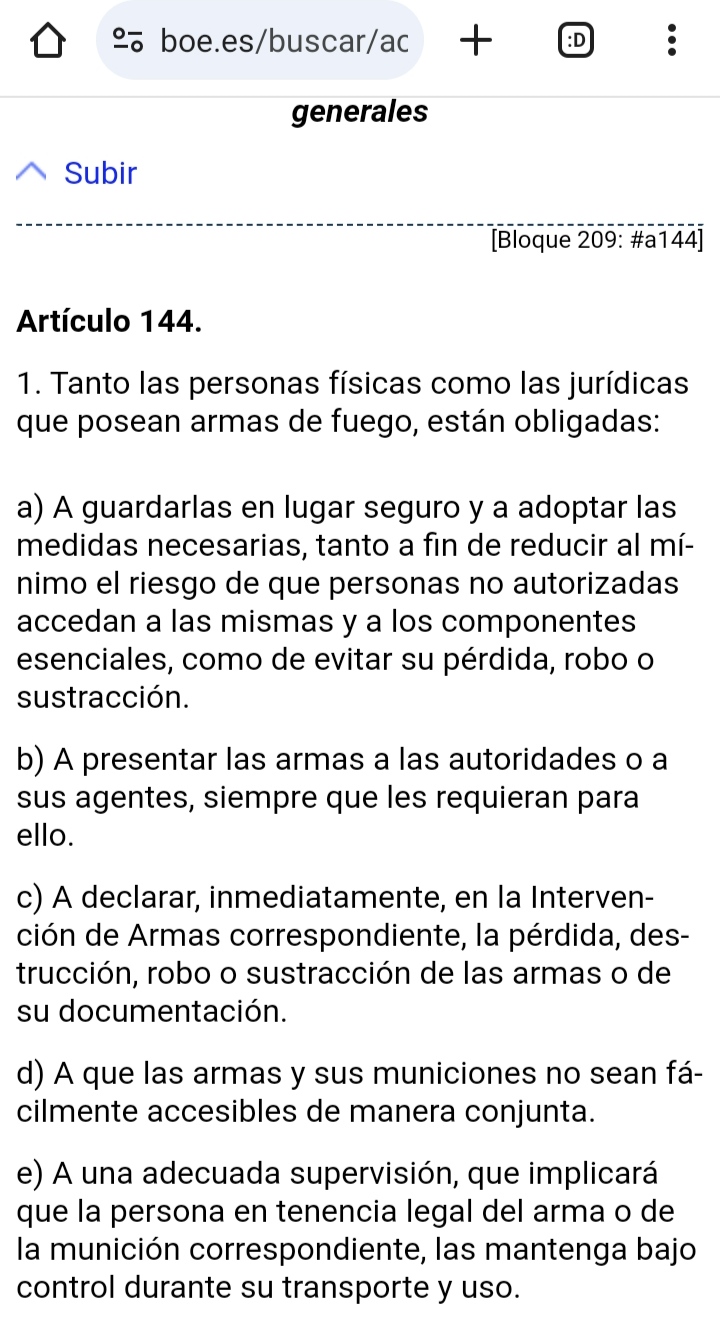 Eso es lo mismo que yo entiendo... lo de guardar la munición en otro lugar distinto del arma para que no sean fácilmente accesibles de manera conjunta, creo que se refiere a la forma de guardarlas en casa... pero no durante el transporte al campo de tiro, que lo único que se prohíbe ahí creo yo, es que el arma vaya cargada.