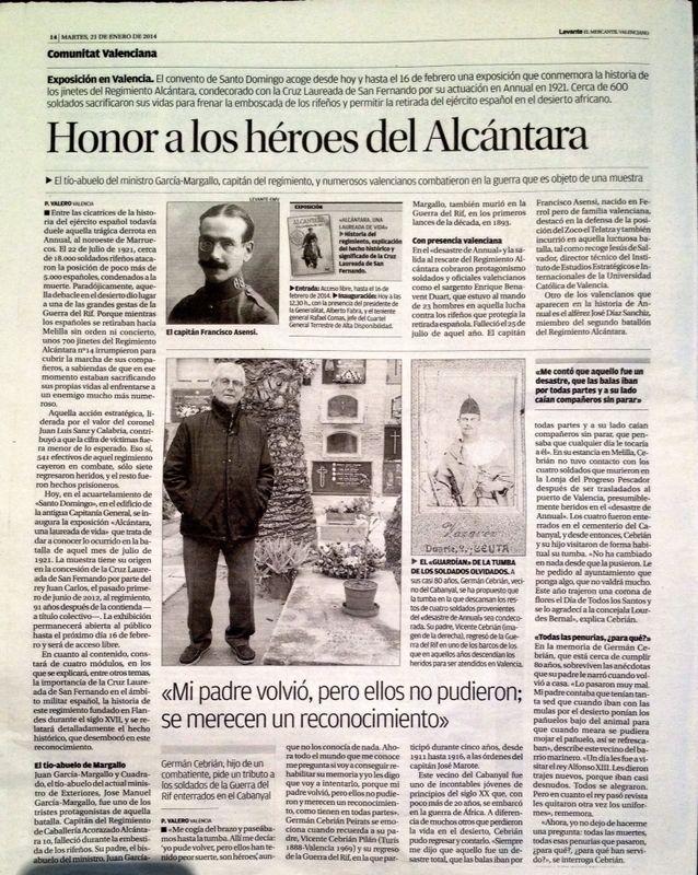 El periodista se equivoca en eso y lo de Garcia Margallo también", Jorge también me comenta que "el redactor del artículo se confunde y lía un poco!... Aunque el resto del articulo no tiene pega alguna. Bueno, una mas, del regimiento Alcántara no se puede decir que tenia batallones sino ESCUADRONES!!!"
