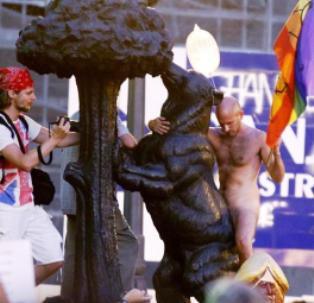 La tolerancia con la gente desnuda, realizando actividades claramente sexuales, en medio de la calle y a despecho de si hay menores o personas que lo encuentren ofensivo.