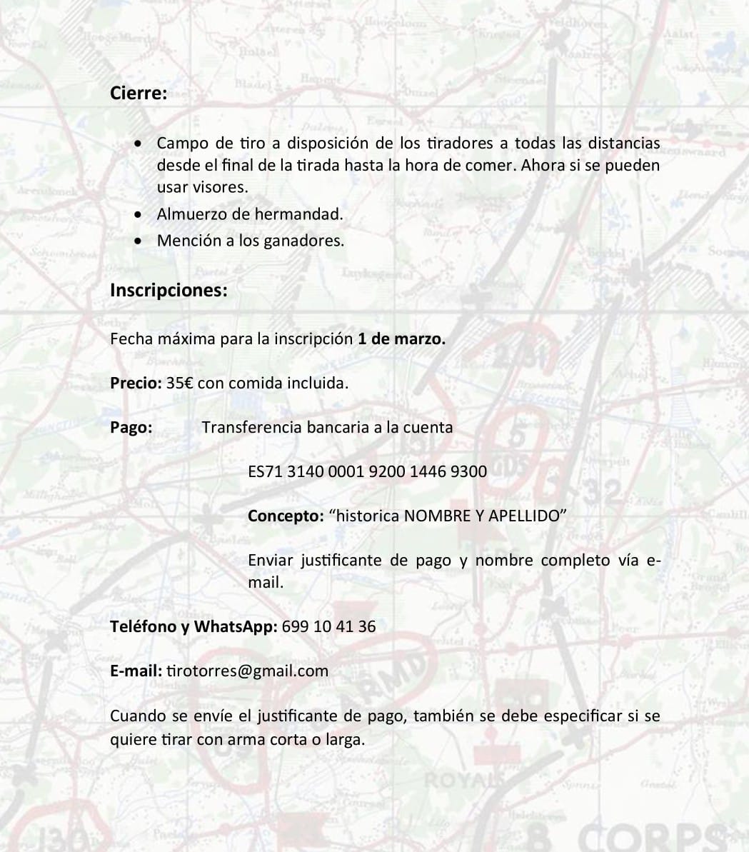 El domingo 22 de marzo celebraremos en el campo de tiro de Torres de Segre la quinta tirada con armas historico militares. Tirada + comida a mediodia 35 euros. Se sorteara entre todos los participantes un Mauser chileno.