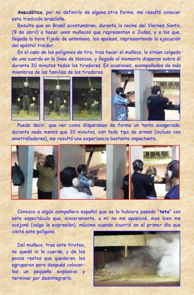 En Brasil.... estuve en un campo de tiro donde el día de los santos hacían una tirada singular... de fuego a discreción durante unos minutos... pero aquello era mas salvaje he impensable en España, dado que tiraban TODOS con varias de sus armas contra un muñeco colgado (monigote) ... impactante!!! muy impactante!!!