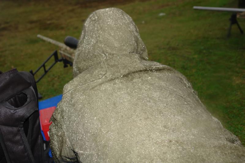 Me toca entrar al puesto de tiro en la primera serie y dispongo los trastos ya con algo más de cuatro gotas cayendo unas veces de un lado y cambiando rápidamente al otro. El suelo se está empapando a toda velocidad y ayer perdí el plástico que tenía para el suelo así que me procuro la colchoneta de Eladi que entra en la siguiente serie.
