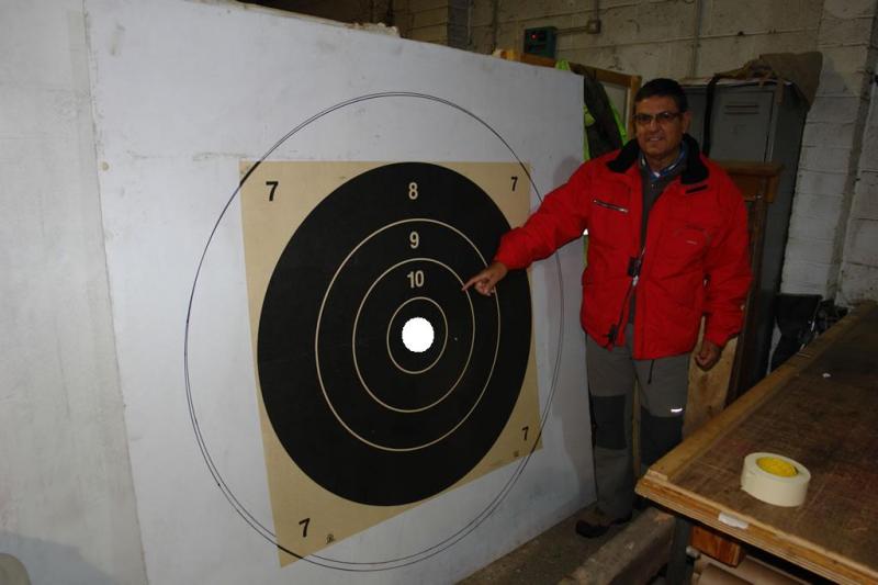 El parche del V-bull lo he dibujado yo porque la diana está sin terminar. A veces ponen en competiciones lo que llaman Bisley Only Target donde el V-bull y primer circulo son iguales que arriba pero los demás los estrechan y apostaría que la Bisley only es la que han puesto para el europeo pues Jose Manuel me dijo estando allí que ojalá hubieran puesto la del mundial.
