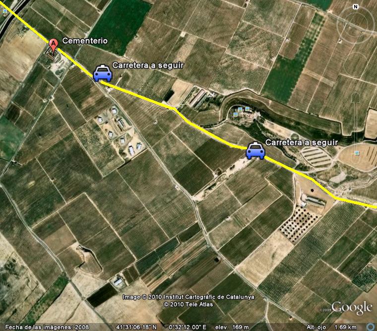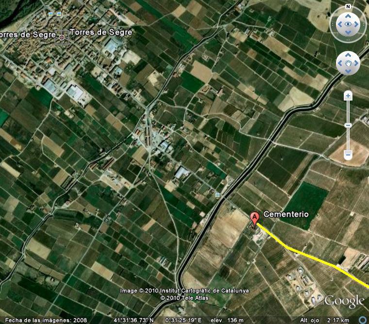 Está por la carretera del cementerio de Torres de Segre te pongo unas fotos aereas para que tengas una idea más o menos.