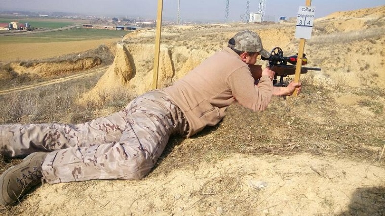 Empezamos la mañana centrando visores como tiene que ser, con distancias cada cinco metros y a continuación y después de la foto de grupo pasamos a hacer el recorrido de campo.