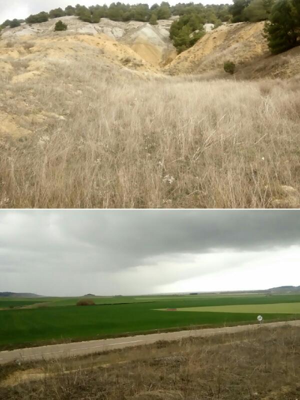 nos hemos pegado una buena paliza subiendo y bajando las Cárcavas, ya que es muy abrupto ese terreno, menos mal que clavar estacas nuevas fué fácil ya que está lloviendo y el terreno se ha ablandado, si no, no las clavamos, eso es como tapial, tierra maciza pura y dura.