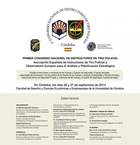 La Asociación Española de Instructores de Tiro Policial y el Observatorio Europeo para el Análisis y Planificación Estratégica, en colaboración con la Facultad de Derecho y Ciencias Económicas y Empresariales de la Universidad de Córdoba, organizan el I Congreso Nacional de Instructores de Tiro que se va a celebrar los días 26 y 27 de septiembre en Córdoba.