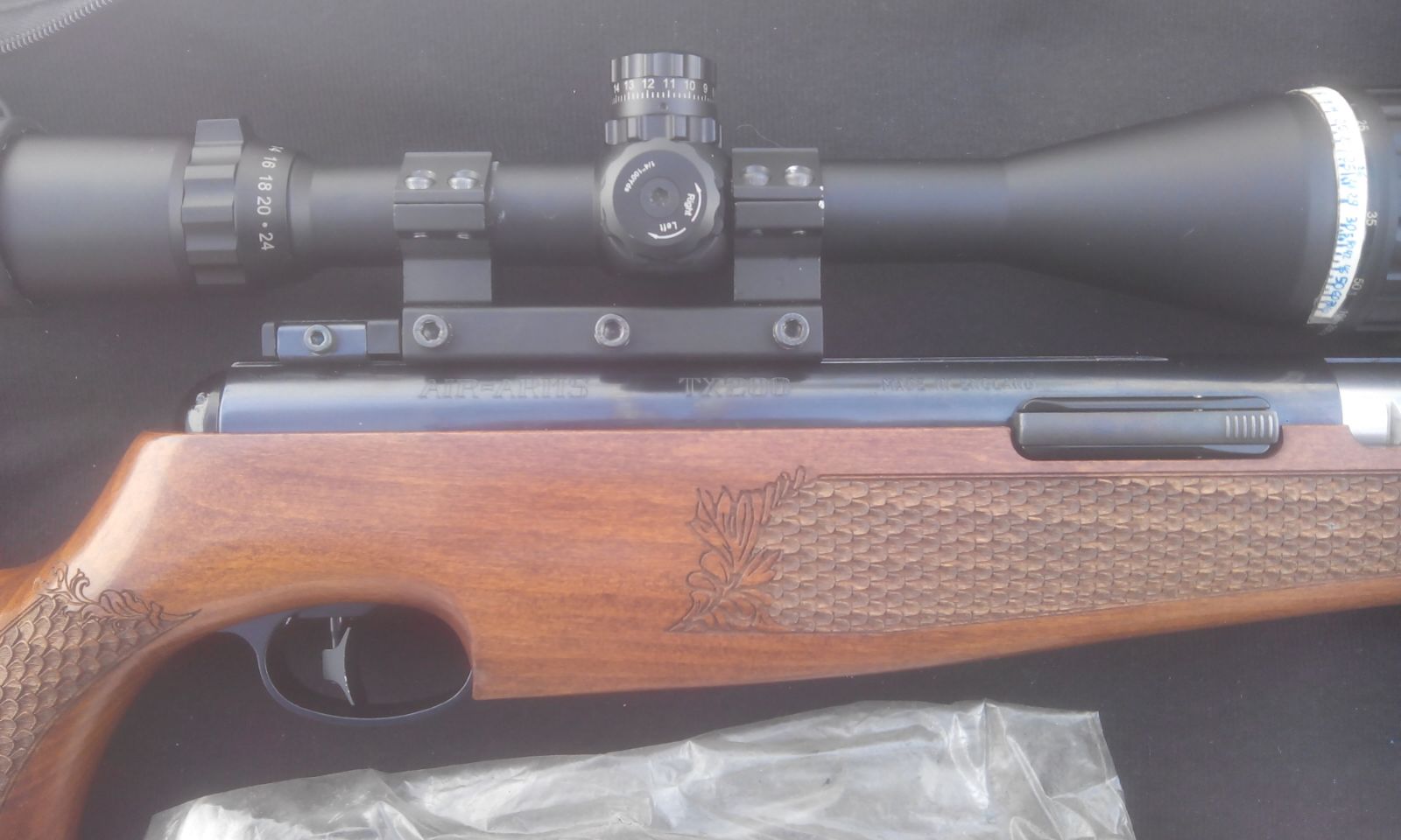 Hola compaňeros pues lo dicho vendo mi air arms tx200 5,5 y visor leapers 6-24x50, la carabina esta muy nueva, se ha utilizado muy poco, tiene el gatillo cambiado por un rowan, tambien entra en el lote dos muelles de recambio uno 16 j y otro 22, aparte de el que tiene que esta preparado por J. Serrano (madrid) da 19 julios, la carabina va muy bien, y el visor pues es un leapers utg 6-24x50 con parasol y tapas y reticula mildot de ocho puntos y esta nuevo, las monturas entrarian con el visor.
