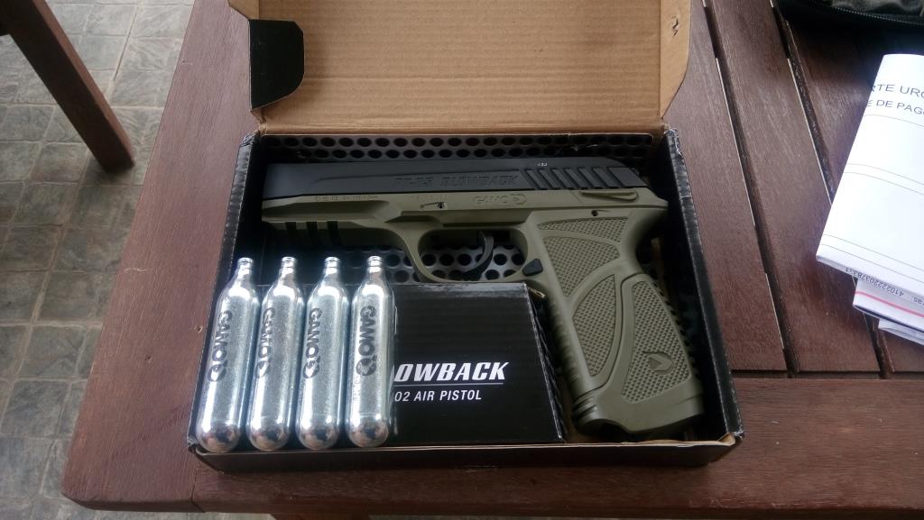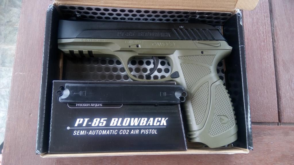 Se vende Gamo PT-85 completamente nueva, la compre para mi hijo pero al final ha dicho que no. Tiene factura de compra, tarjeta de armas para darse de alta en el Ayuntamiento y 4 de las 5 botellas de CO2 (marca gamo) que traía. El precio es de 70 € gastos de envio incluidos. La factura es del 13-06-2016, o sea que tiene 5 dias.