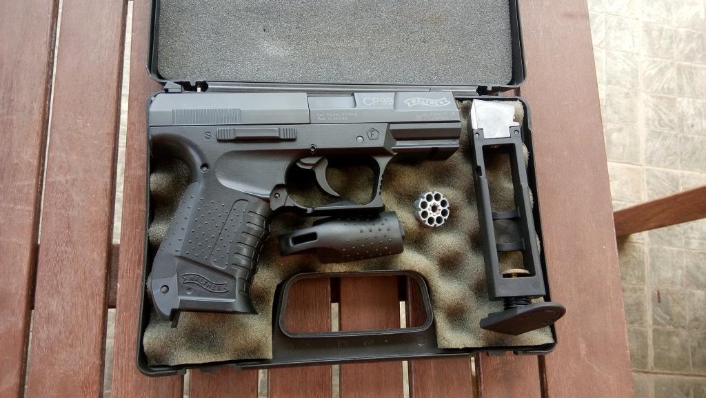 Vendo Walther CP99 perfecta de funcionamiento y de aspecto exterior. Se vende con todo lo que se ve en la foto, incluido el maletin. Precio 75 € incluido el envio a peninsula. Un saludo