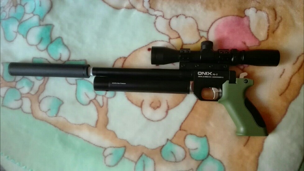 Vendo pistola pcp Onix Ps1, con adaptador y moderador de sonido, visor de pistola de 2-7 aumentos y con bomba de llenado marca gamo.