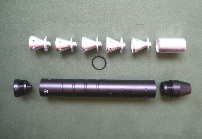 Hola compañeros. Sigo vaciando el tema aire comprimido/airsoft. Vendo en Madrid este moderador para aire comprimido o PCP. Válido para calibres 4,5 y 5,5. Interior desmontable para limpieza. Rosca 1/2 UNF. Precio: 75€. Saludos.