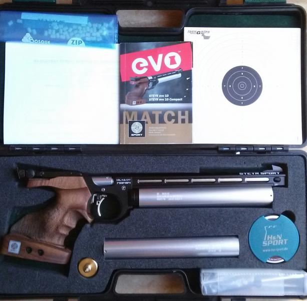 Tras probarla, y ver que vuelve a aparecer antigua lesión de codo vuelvo al modelo compact y vendo la steyr evo 10 mecánica, con manual prueba de banco, herramientas y maletín. Todo en muy buen estado.