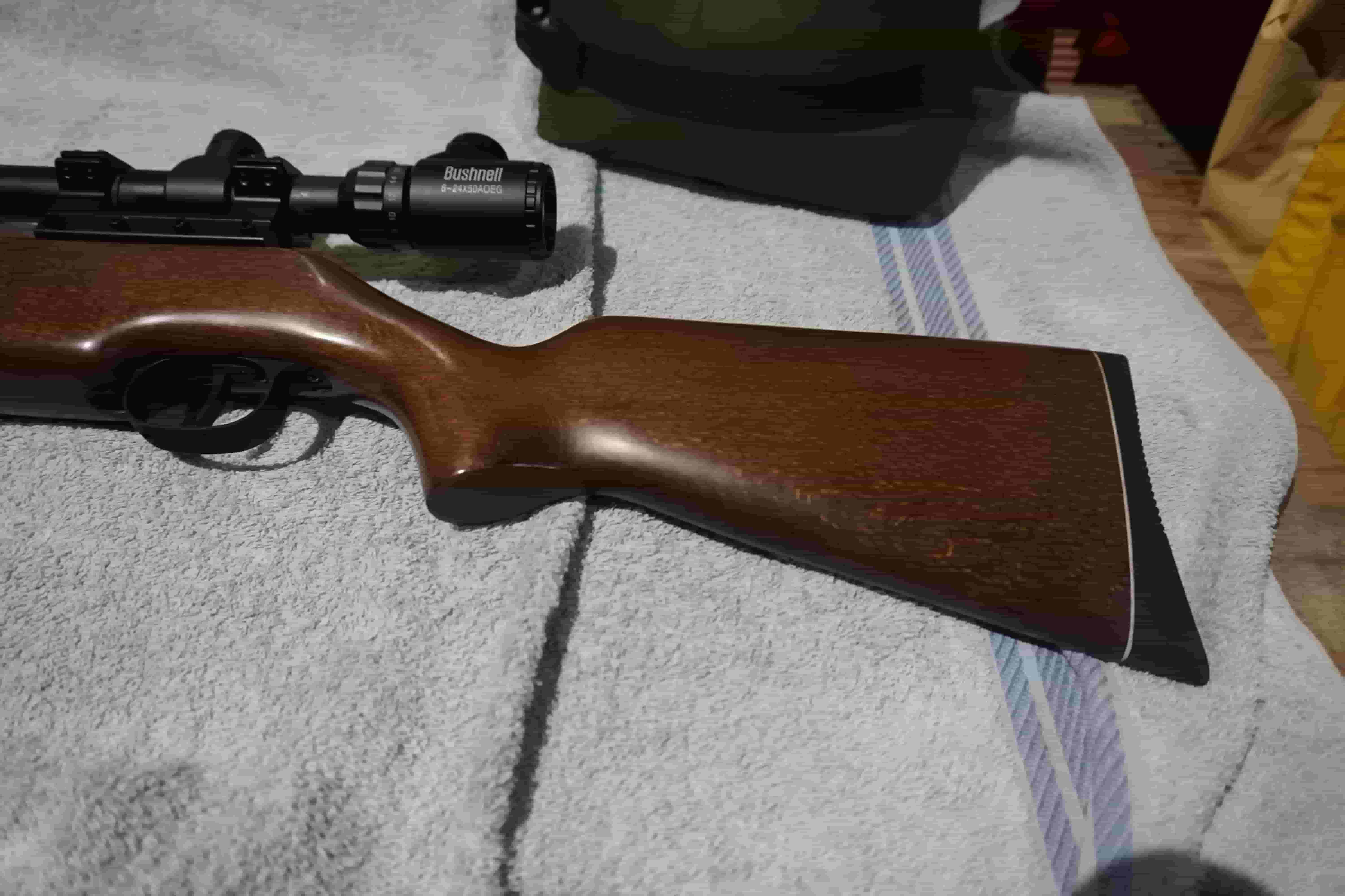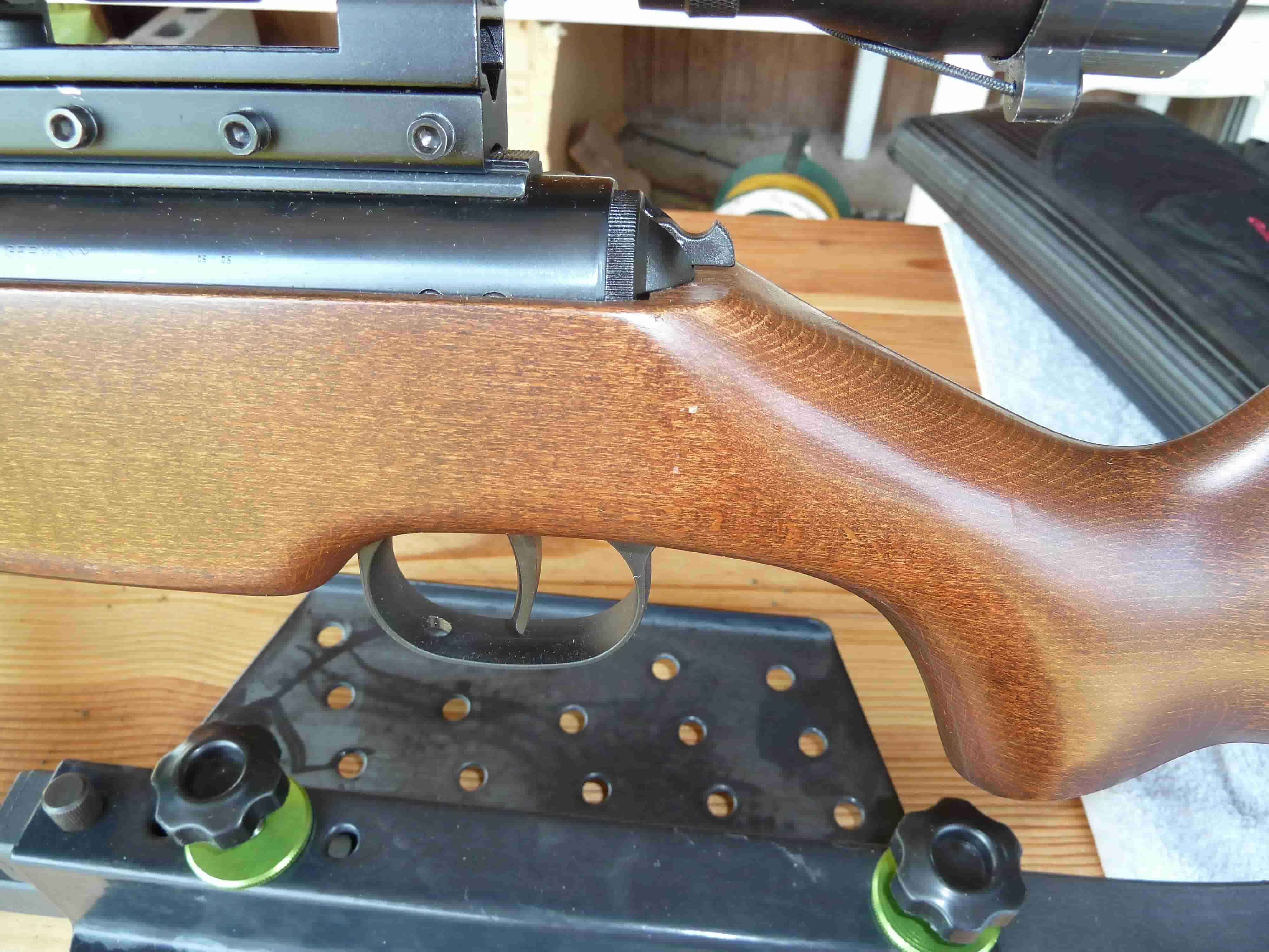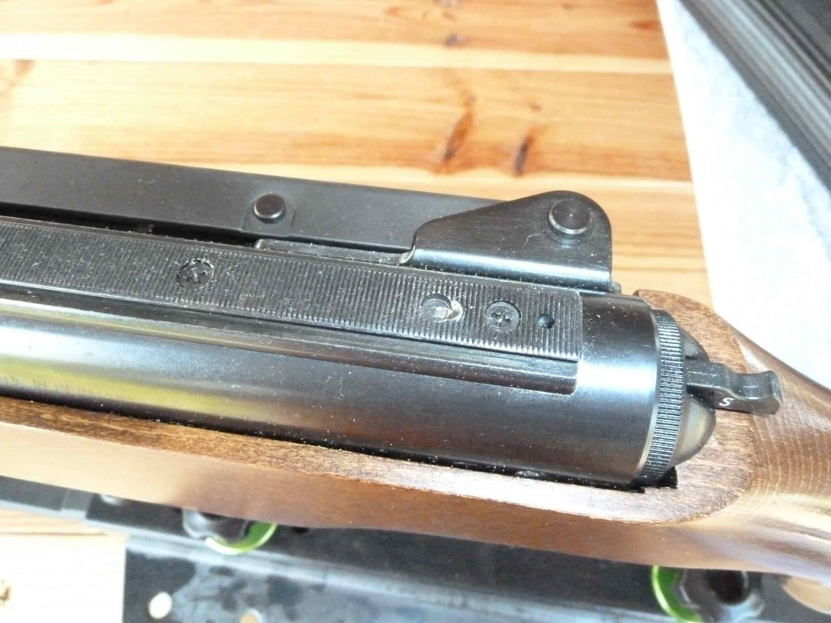 Y en el pin stop del rail si se amplían las fotos se ve un poco rozado. Cualquier otra mancha o marca que veáis en las fotos es consecuencia de la reducción de la fotografía, no de que la carabina tenga ninguna marca que no haya citado.
