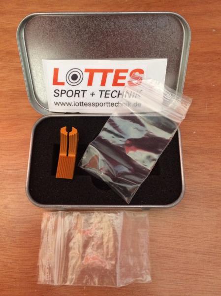 Vendo cola de disparador de LOTTES prácticamente nueva. Se entrega con su estuche metálico, pegatinas y dos tornillos fijadores.