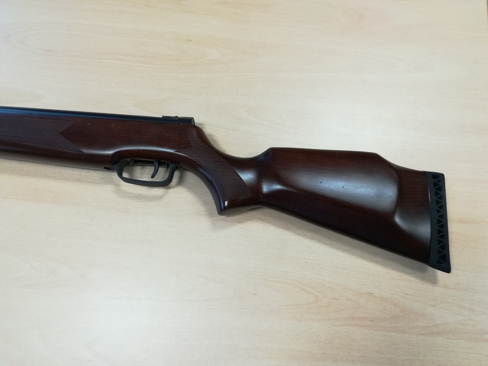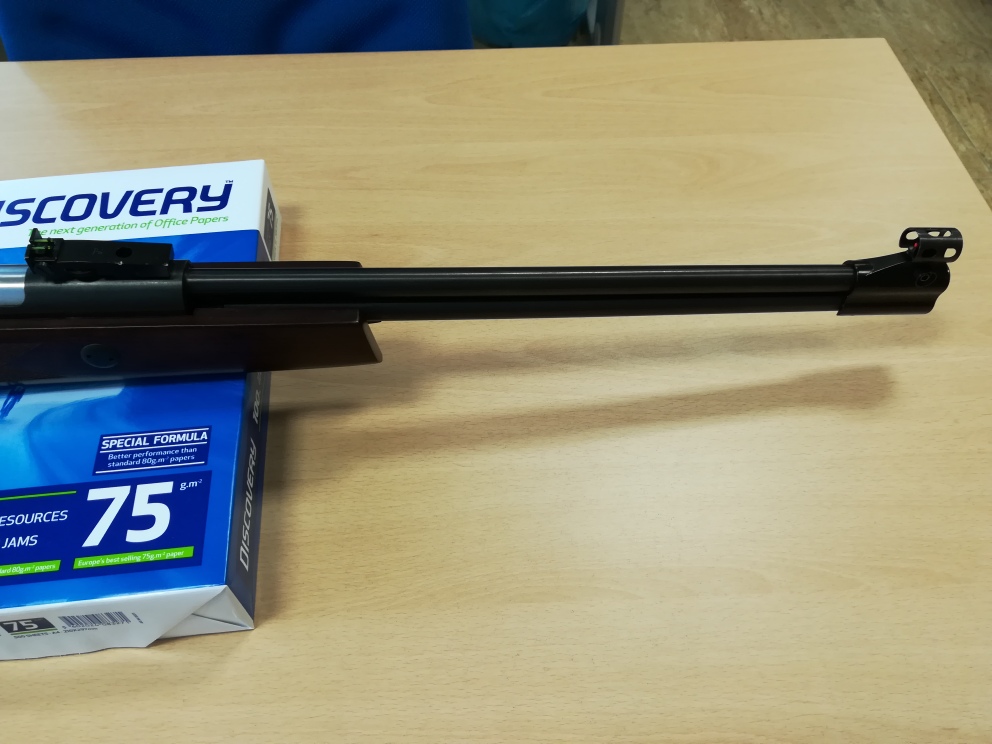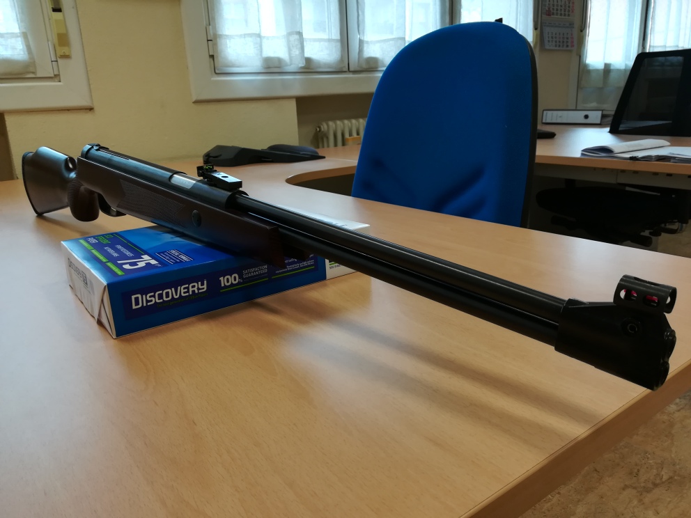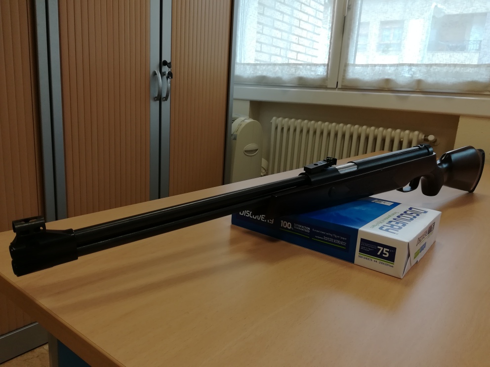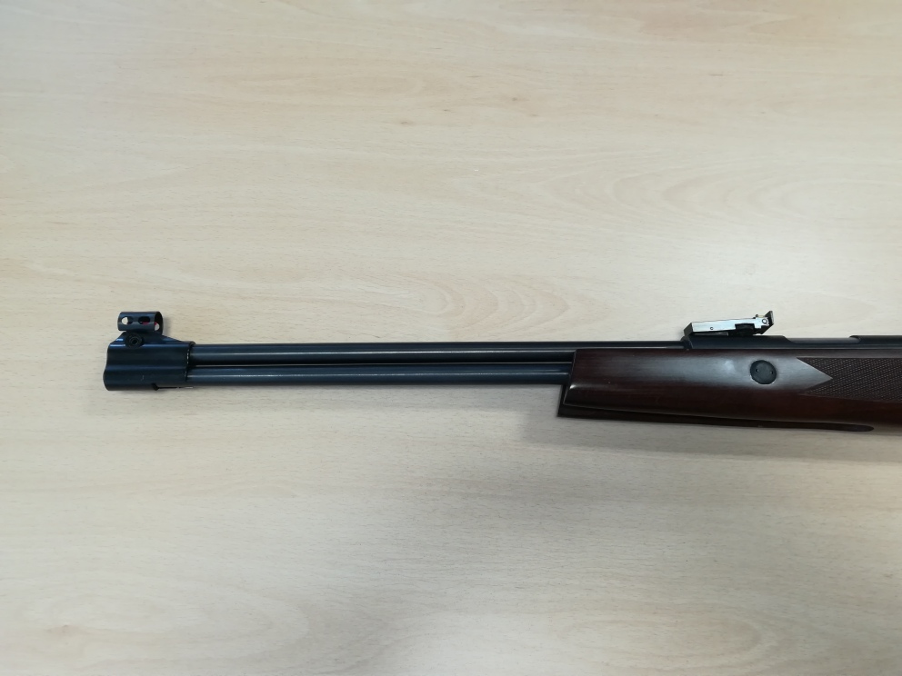 Tengo que decir que esta carabina es la única carabina de cañón fijo y con camisa desplazable (por lo menos yo no conozco otra) que se puede montar un gas ram fácilmente, es decir, el pistón de esta carabina no lleva el eje central para el bloqueo del pistón como las HW97, TX200, LGU, etc. que dificulta la instalación del gas ram. Tiene dos seguros, un seguro para la palanca de carga y otro seguro para el gatillo para evitar accidentes.