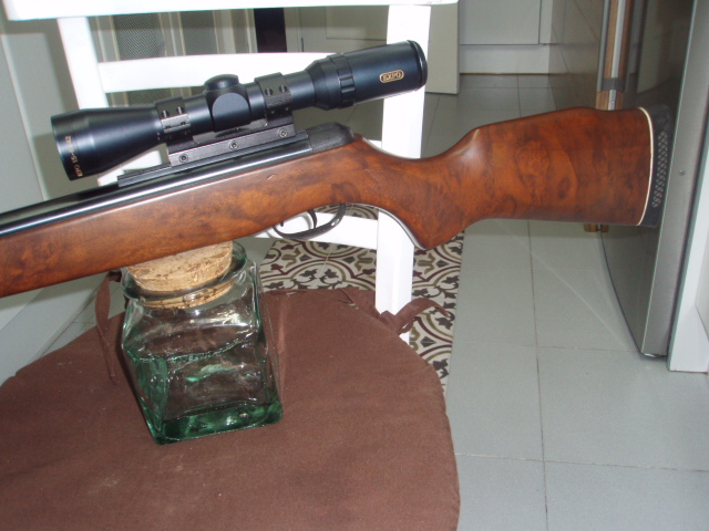 Una preciosa Gamo BZ 30, los antiguos la recordareis por su punto laser y la espectacular bocacha metálica.