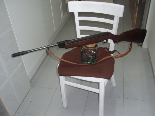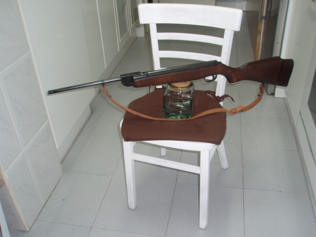 carece de alzas y punto de mira originales, asi que la dejo tal cual, respetando su esencia.Para las fotos le he puesto una bocacha de plástico de Gamo, por si se le quisiera instalar un visor.
