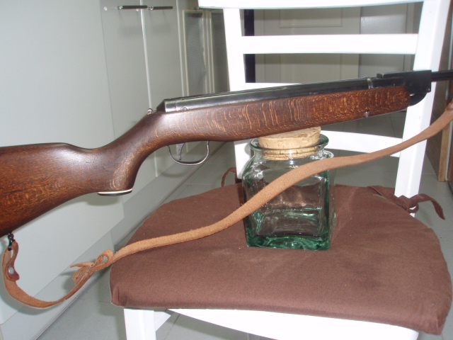 Esta pequeña carabina tenía la particularidad de que se servía con dos cañones ( 4,5 y 5,5 ). Solo dispongo del de 5,5. perfectamente ajustado.