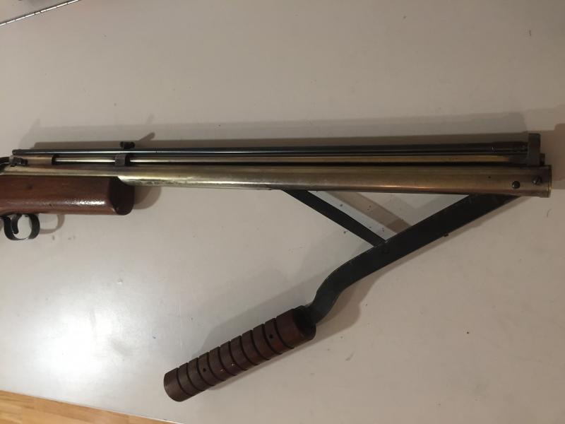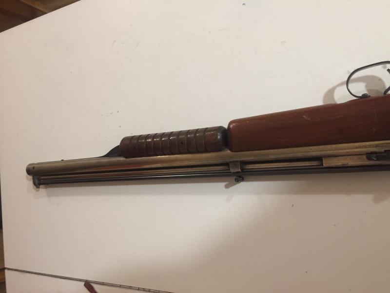 Se vende carabina de 1958 Benjamin modelo 3100 calibre 4.5 solo admite BB tiene un cargador de 100, es por bombeo.