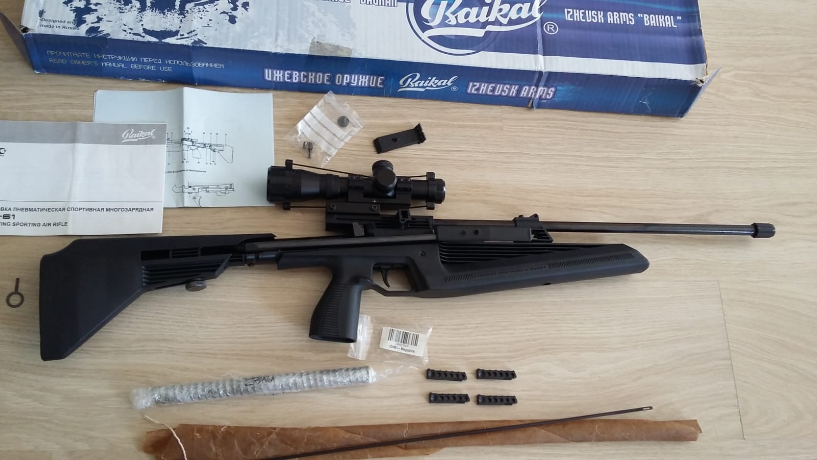 Tiene instalado un GasRam pedido a Rusia pero se entrega también el muelle original. Tiene 4 cargadores de 5 diabolos y los accesorios que trae de origen. Carabina de carga lateral, ligera, bastante silenciosa, ideal para tiro interior y sin peligro de atrapamientos. 100€.