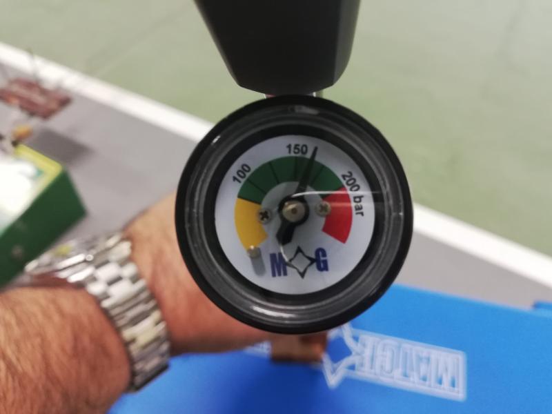 Él la compró de segunda mano en una armería y trae lo que veis en las fotos. Maletín, una botella, racord e instrucciones de cómo van las alzas.