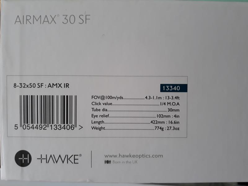 Re: Vendo Hawke Airmax 8-32x50 sf reticula AMX ir