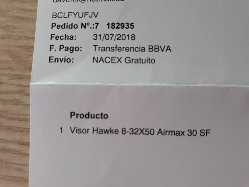 Re: Vendo Hawke Airmax 8-32x50 sf reticula AMX ir Ultimo precio
