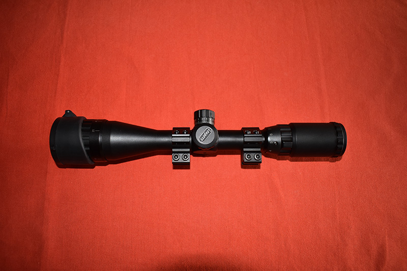 Es un Leapers 3-9x40 con paralaje frontal, retícula mil-dot iluminada, con monturas bipieza bajas. Que decir de este visor que no se haya dicho ya, cómodo en su uso, resistente y se ve muy bien. Solo tengo la tapa abatible de la campana, la trasera murió en acto de servicio.