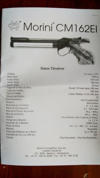 Re: VENDO PISTOLA COMPETICION ELECTRONICA " MORINI CM 162 EI "