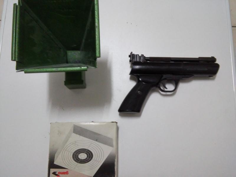 Pistola de aire comprimido Webley Tempest de 4.5 con muy poco uso. Incluyo diana con depósito de munición.
