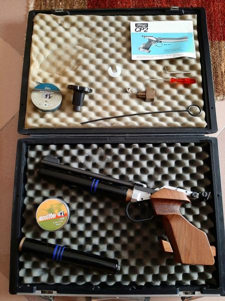 Vendo pistola de competición Walther Cp2 Match de CO2. La pistola tiene sus años pero por las fotos veréis que está muy bien conservada. La he usado más bien poco pues yo soy de oler a pólvora quemada y la compré nueva para ir tirando en aire mientras conseguia la licencia F. Tiene maletín de la marca y todos los componentes de serie como llave para regular empuñadura, llave de rosca de carga y válvula de vaciado de bombonas, dos bombonas a las que les cambié todas las juntas creo que hace cinco años, empuñadura tamaño M.