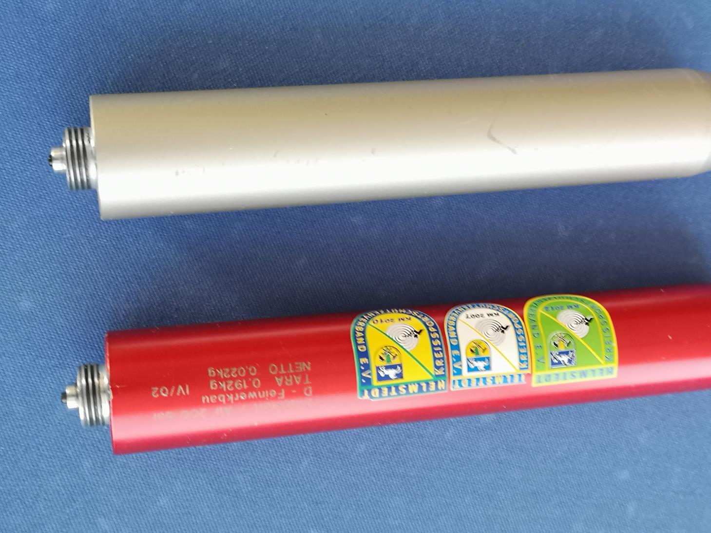 1 bombona PCP para carabinas PCP de Feinwerkbau al precio de 45€ (envio incluido). CURIOSIDAD: La bombona larga de carabina se puede rosca en la pistola para entrenar y acostumbrar el brazo a más peso, con capacidad para varios cientos de tiros.