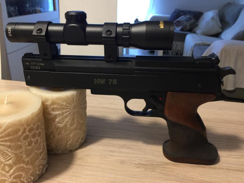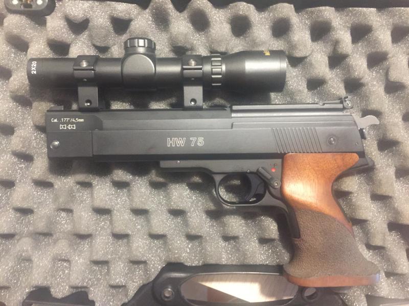Hola pongo a la venta mi HW 75 en estado de coleccion incluye la mira 2x20 de la marca weihrauch y el maletín para su transporte el calibre 4,50 muy precisa y sin recoil. 300 euros ,sin maletin ni la mira 250 euros .