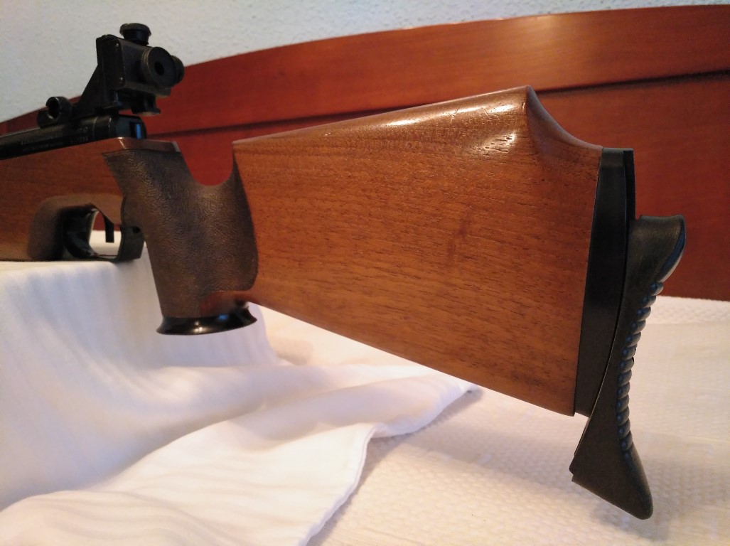 Feinwerkbau 300s para tirador zurdo, la carabina se encuentra en un excelente estado general con leves signos de uso tanto en culata como en la acción, el pavonado es negro y brillante y libre de oxido, casi como nuevo, la palanca de carga tiene unos arañazos superficiales (ver foto).