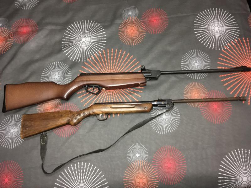 Vendo juntas una Ojmar Junior y una Gamo David DS. Están en buen estado, a la Gamo le falta la ruleta del alza y la barra del punto de mira; el guardamonte no es original. La Ojmar funciona pero tiene poca potencia. Nunca han sido restauradas. 110€ más portes por las dos. No las vendo sueltas. Un saludo.