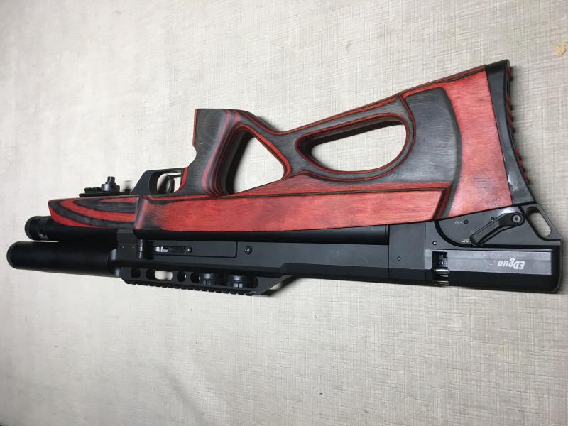 Culata laminada en rojo y negro, con dos cargadores, aguja de carga, toricas originales, regalo funda en camo y lata de balines Edgun de 33,95 gns y adaptador para bipode y correa.